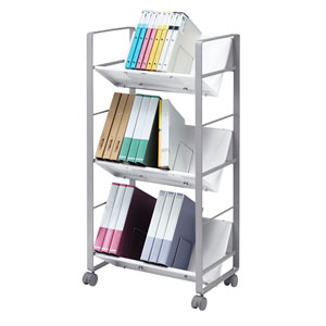 斜め設計の棚板で収納物が取出しやすい、書類整理に便利なファイルワゴン。