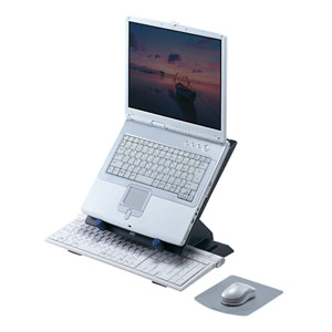 ノートパソコンを見やすい高さ・角度に調節できるアルミ製スタンド。